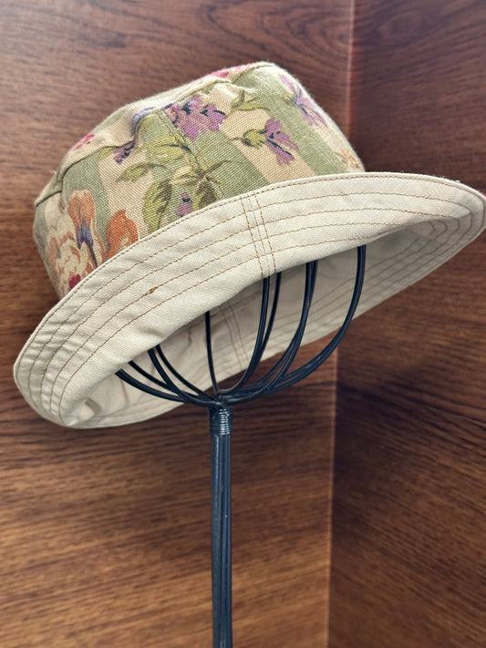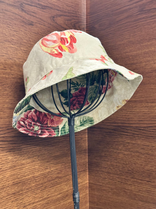 Bucket Hat Medium Cream Vintage Floral Handmade