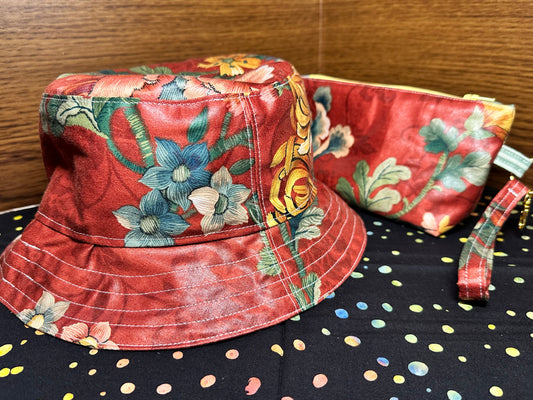 Bucket Hat & Soft Clutch Rust Red Floral Large