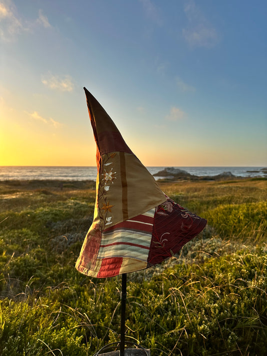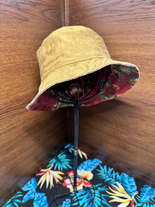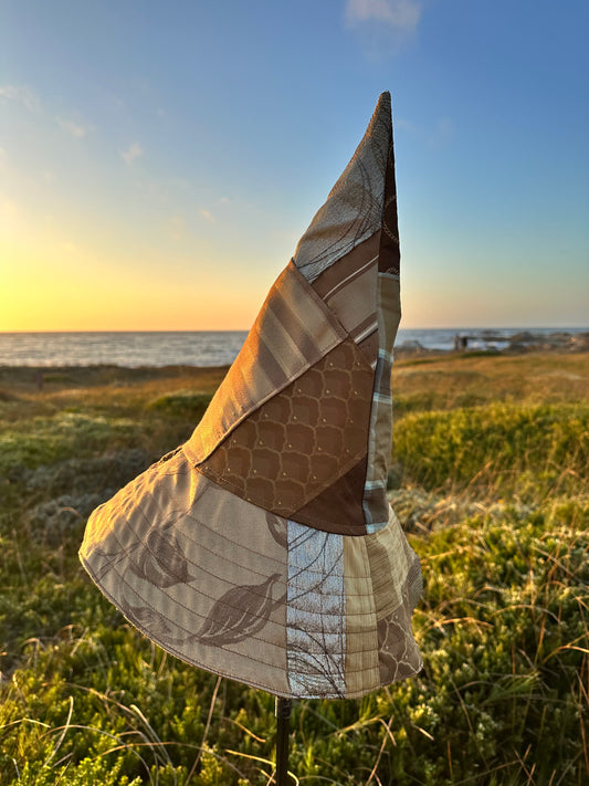 A Witches Hat Reversible Large Gold/Tan Handmade Reclaimed Fabrics