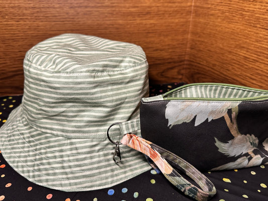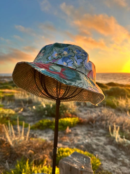 Bucket Hat Small Green Stripes Vintage Floral Handmade