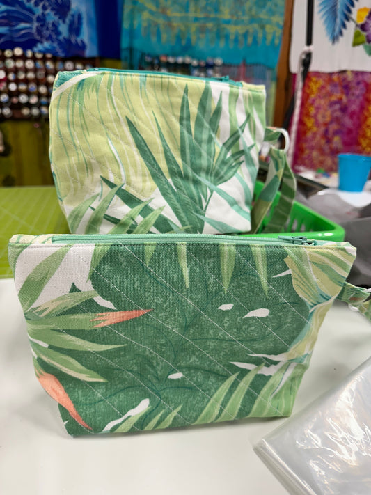 Bucket Hat & Quilted Clutch Set White with Palm Leaves