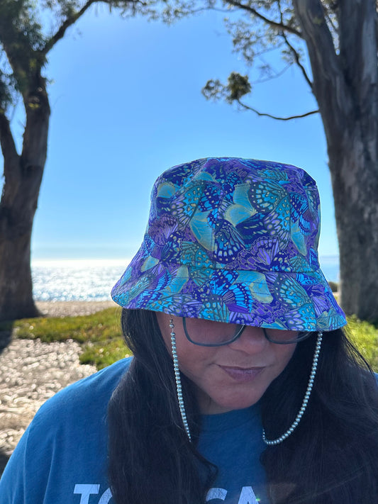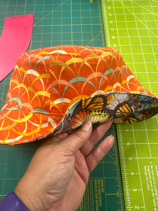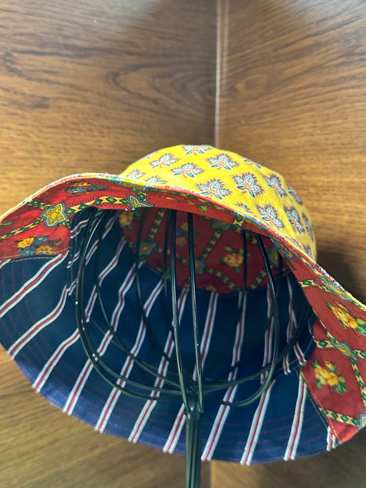 Blue Red Yellow Bucket Hat Small Handmade Vintage Materials