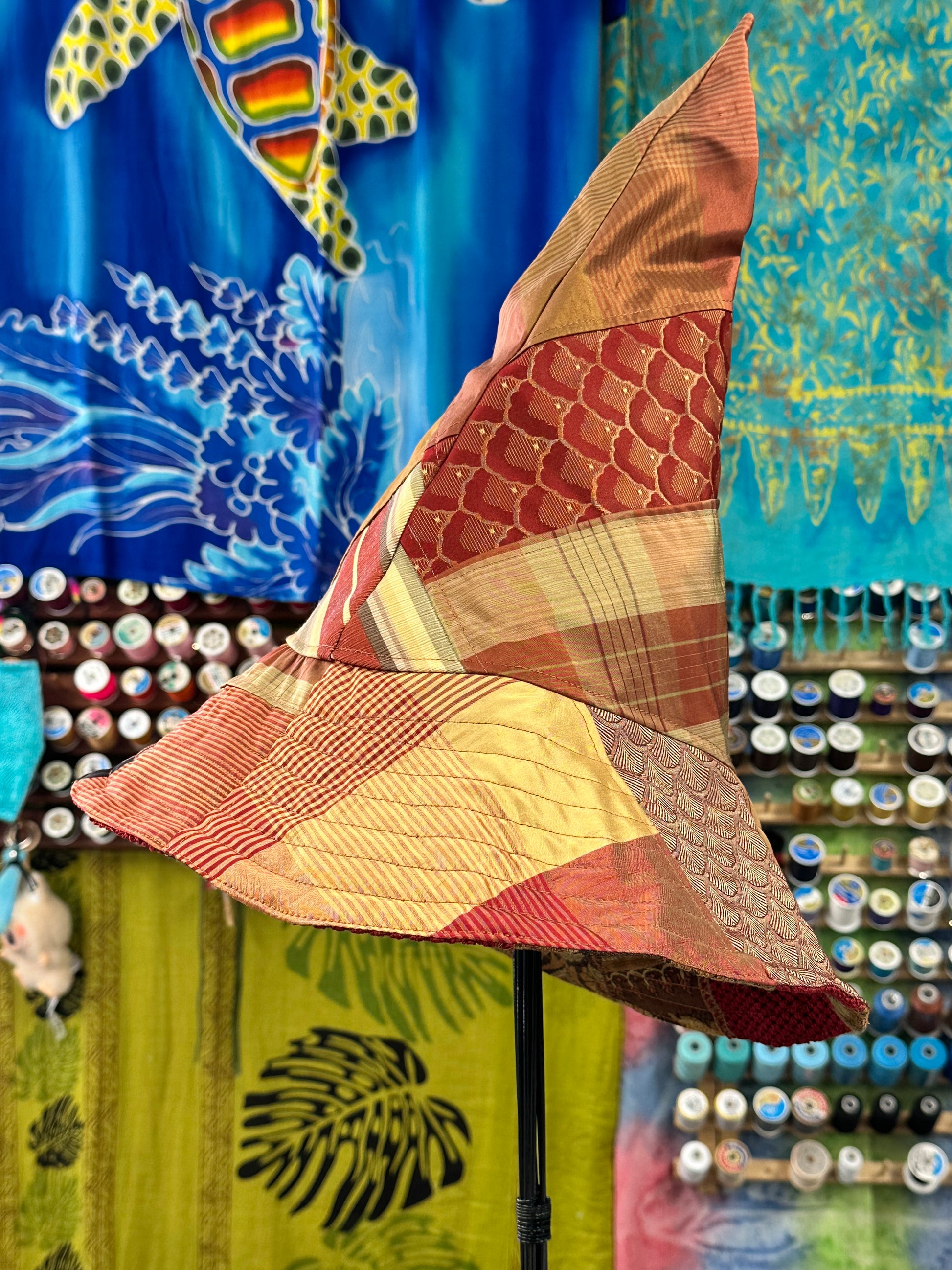 A Witches Hat Reversible Red Large Handmade Reclaimed Fabric